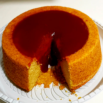 Bolo de fubá com cobertura de goiabada